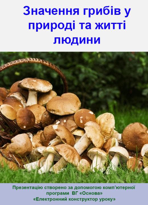 УРОК 59 Значення грибів у природі та житті людини. Практична робота 5. Розпізнавання їстівних та отруйних грибів своєї місцевості
