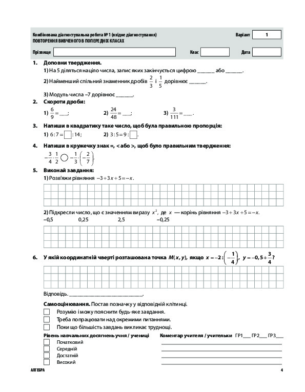 Комбінована діагностувальна робота № 1 (вхідне діагностування). Повторення вивченого в попередніх класах . . . . 4