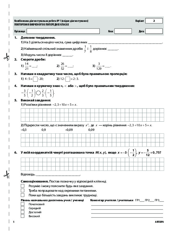 Комбінована діагностувальна робота № 6. Лінійне рівняння з однією змінною . . . .24