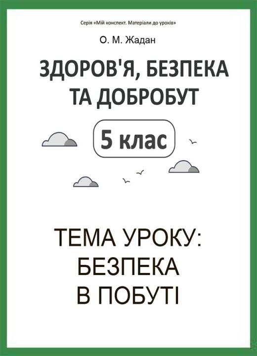 Конспект уроку в форматі PDF (3 стор.) з теми «Безпека в побуті» складено, відповідно вимогам нового Державного стандарту базової середньої освіти, типової освітньої програми для учнів 5–9-х класів закладів загальної середньої освіти (наказ МОН № 235 від 19.02.2021 р.), а також вимогам усіх чинних модельних навчальних програм інтегрованого курсу «Здоров’я, безпека, благополуччя. 5–6 класи». Для вчителів, які викладають інтегрований курс «Здоров’я, безпека, благополуччя» у 5-х класах Нової української школи.