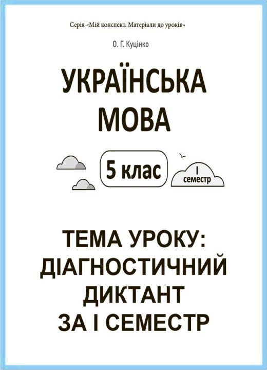 Конспект уроку в форматі PDF (1 стор.) з теми «Діагностичний диктант за І семестр» складено, зважаючи на всі наявні модельні навчальні програми «Українська мова. 5—6 класи» для закладів загальної середньої освіти, рекомендовані Міністерством освіти і науки України (наказ Міністерства освіти і науки України від 12.07.2021 № 795). Для вчителів української мови.