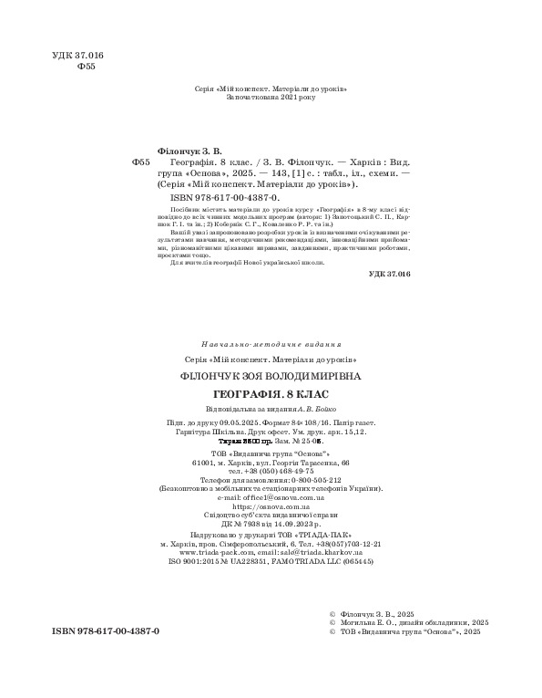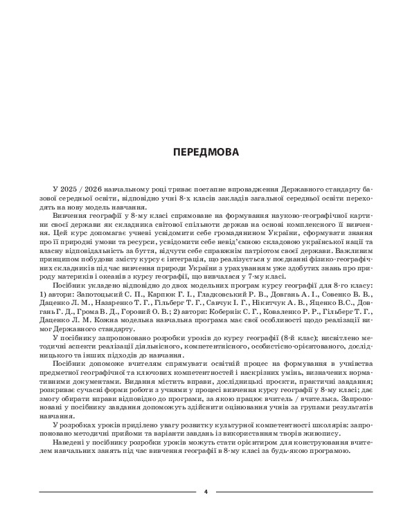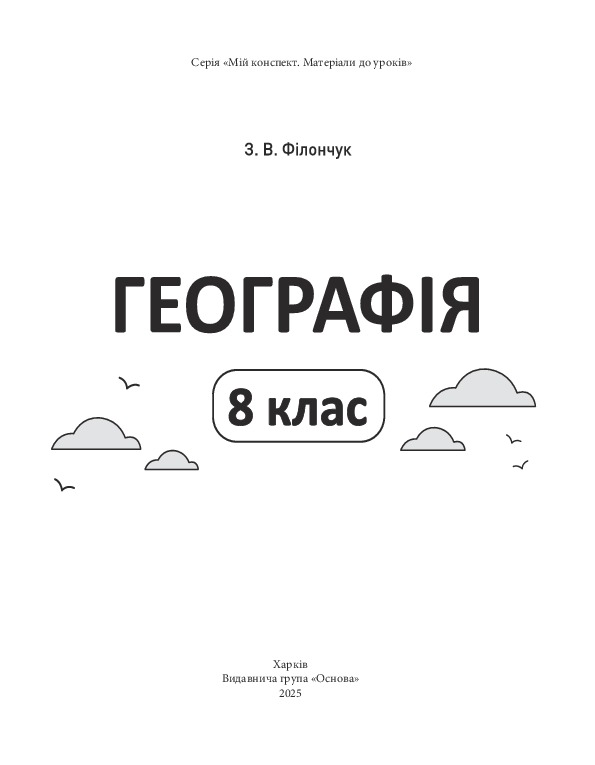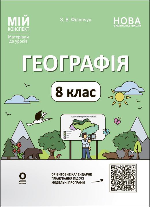 Посібник містить матеріали до уроків курсу «Географія» в 8-му класі відповідно до всіх чинних модельних програм (автори: 1) Запотоцький С. П., Карпюк Г. І. та ін.; 2) Кобернік С. Г., Коваленко Р. Р. та ін.)