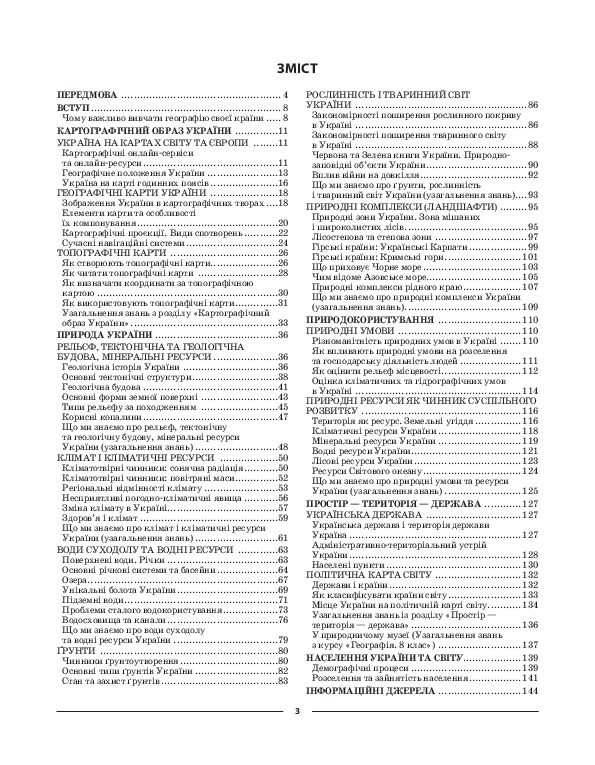 Узагальнення знань із розділу «Простір — територія — держава»..........136