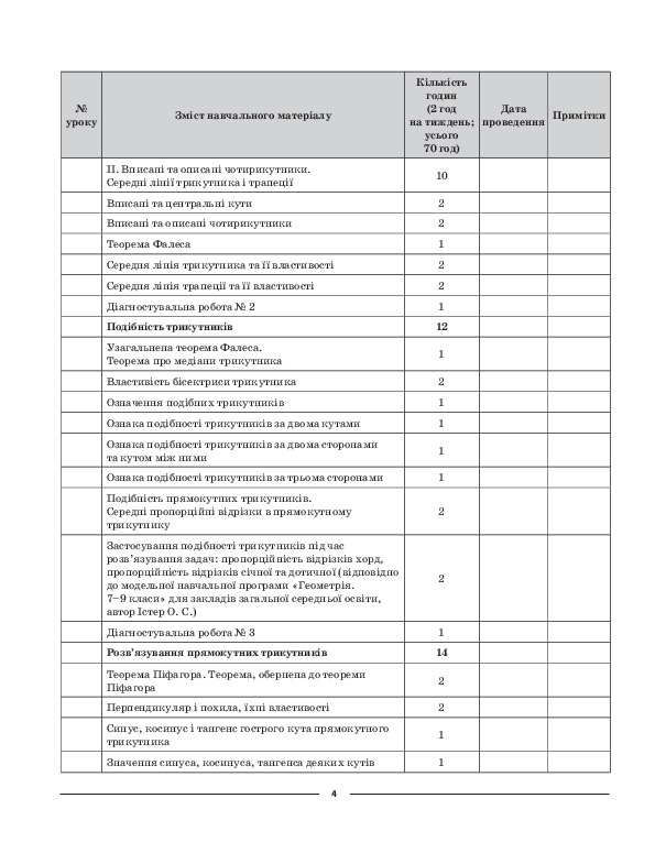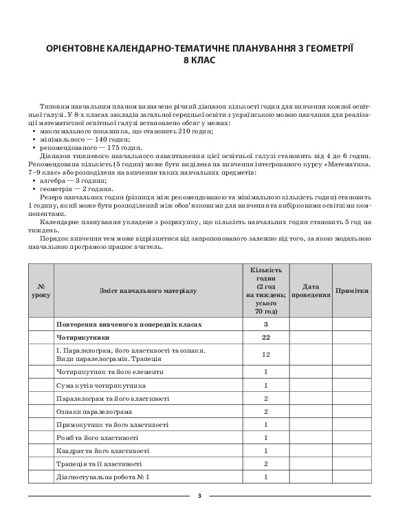 Орієнтовне календарно-тематичне планування з геометрії. 8 клас . . . 3