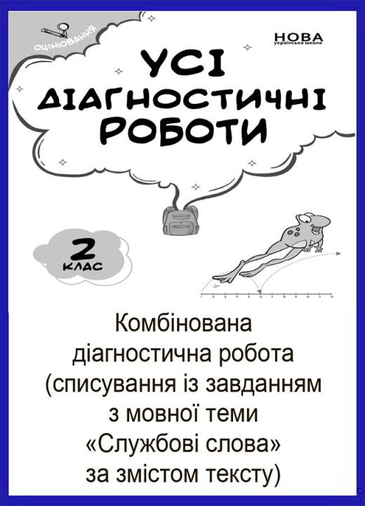 Комбінована діагностична робота (списування із завданням за змістом тексту) для оцінювання навчальних досягнень в форматі PDF (2 стор.) з мовної теми «Службові слова». Завдання діагностичних робіт дібрані відповідно до вимог нового Державного стандарту початкової освіти (2018) та чинних Типових освітніх програм, з урахуванням Методичних рекомендацій щодо оцінювання навчальних досягнень учнів другого класу. Для вчителів початкових класів, методистів з початкового навчання, гувернерів, батьків другокласників.