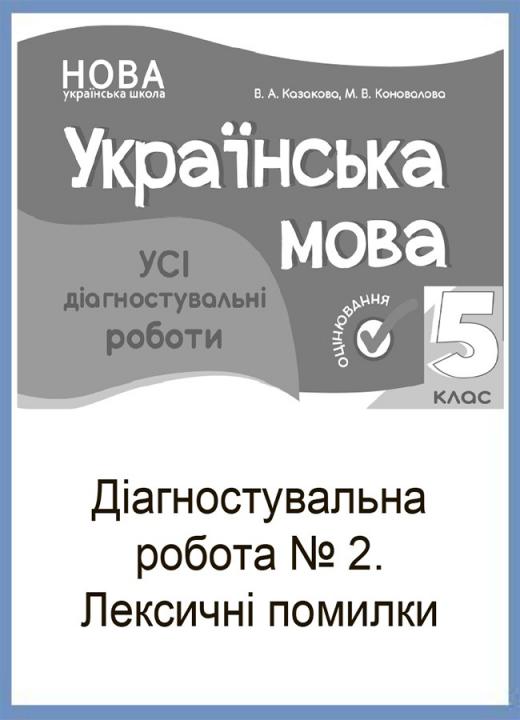 Діагностувальна робота для оцінювання навчальних досягнень в форматі PDF (2 стор.) з теми «Лексичні помилки» складено, відповідно до основних модельних навчальних програм Державного стандарту базової загальної середньої освіти: «Українська мова. 5–6 класи» для закладів загальної середньої освіти (автори Голуб Н. Б., Горошкіна О. М.) та «Українська мова. 5–6 класи» для закладів загальної середньої освіти (автори: Заболотний О. В., Заболотний В. В., Лавринчук В. П., Плівачук К. В., Попова Т. Д.), рекомендованих Міністерством освіти і науки України (наказ Міністерства освіти і науки України від 12.07.2021 № 795). Для вчителів англійської мови, які з 2022—2023 навчального року впроваджуватимуть модель НУШ у 5 класі закладів загальної середньої освіти. Для вчителів української мови.