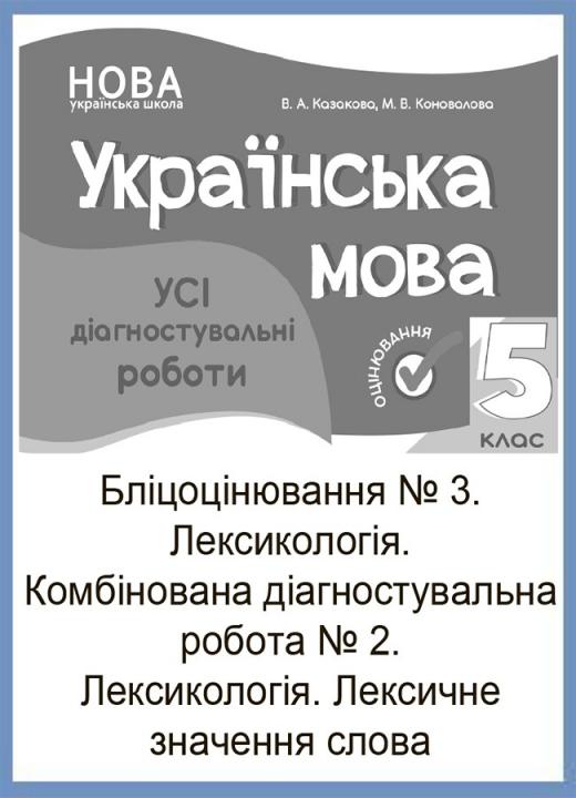 Бліцоцінювання та комбінована діагностувальна робота для оцінювання навчальних досягнень в форматі PDF (5 стор.) з теми «Лексикологія. Лексичне значення слова» складено, відповідно до основних модельних навчальних програм Державного стандарту базової загальної середньої освіти: «Українська мова. 5–6 класи» для закладів загальної середньої освіти (автори Голуб Н. Б., Горошкіна О. М.) та «Українська мова. 5–6 класи» для закладів загальної середньої освіти (автори: Заболотний О. В., Заболотний В. В., Лавринчук В. П., Плівачук К. В., Попова Т. Д.), рекомендованих Міністерством освіти і науки України (наказ Міністерства освіти і науки України від 12.07.2021 № 795). Для вчителів англійської мови, які з 2022—2023 навчального року впроваджуватимуть модель НУШ у 5 класі закладів загальної середньої освіти. Для вчителів української мови.