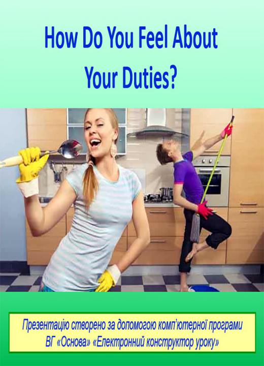 Презентація в форматі Ppt плюс конспект у форматі Doc (3 стр.) до уроку №12. How Do You Feel About Your Duties? 7 клас (за підручником А. М. Несвіт).