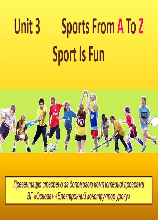 Презентація в форматі Ppt плюс конспект у форматі Doc (3 стр.) до уроку №33. Sport Is Fun. 7 клас (за підручником О. Д. Карп’юк).