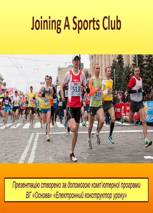 Презентація в форматі Ppt плюс конспект у форматі Doc (3 стр.) до уроку №36. Joining A Sports Club. 7 клас (за підручником О. Д. Карп’юк).
