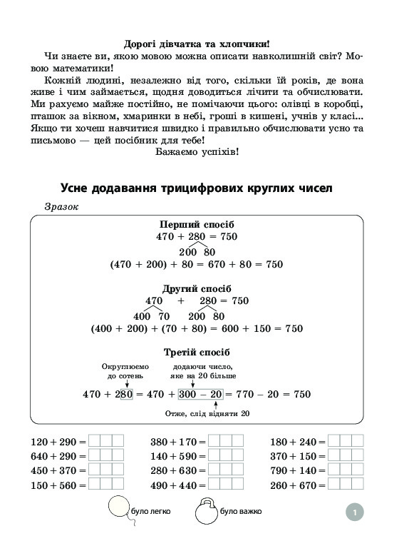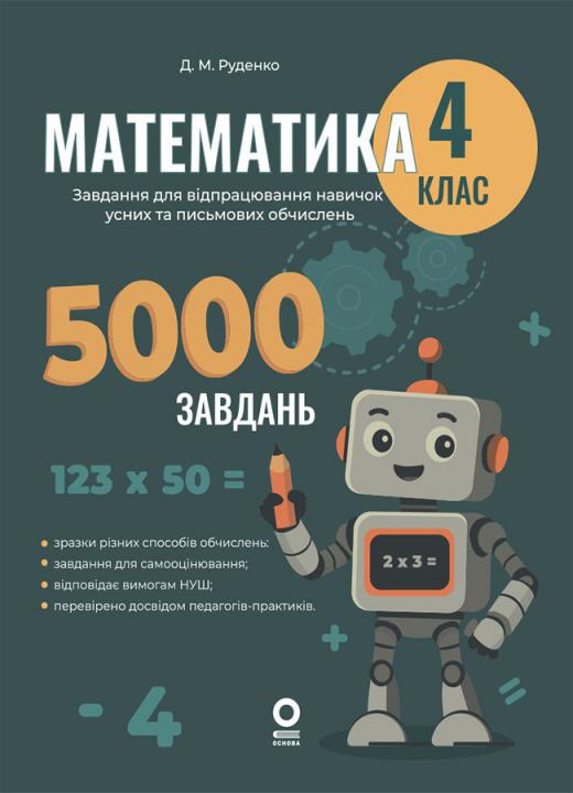 Посібник містить різноманітні види усних і письмових обчислень та вправи, які допоможуть учням четвертого класу вдосконалити навички швидкого й точного обчислення. Завдання відповідають програмовим вимогам НУШ та структуровані за рівнями складності, що дає змогу учням поступово поліпшувати свої математичні вміння.