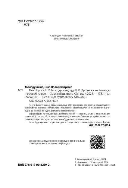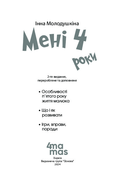 Книга буде цікавою і корисною для всіх дорослих, хто взаємодіє із дітьми 4 років.