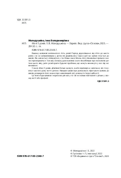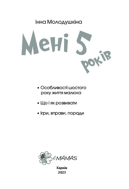 У книзі «Мені 5 років» дбайливі батьки зможуть знайти відповіді на запитання, які стосуються шостого року життя дитини. Наведені цікаві ігри допоможуть підготувати малюка до школи, розширити його знання про навколишній світ, розвинути творчі здібності. Ця книга буде цікавою і корисною для всіх, хто так чи інакше пов’язаний з дітьми у своєму житті або професії.