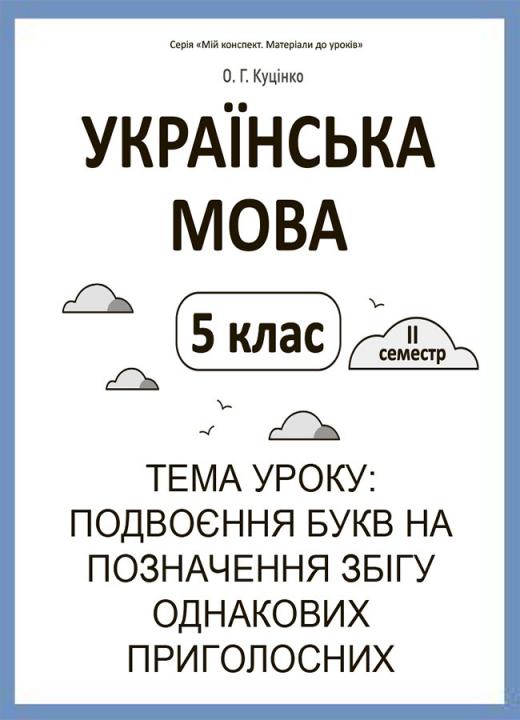 Конспект уроку в форматі PDF (3 стор.) з теми «Подвоєння букв на позначення збігу однакових приголосних» складено, зважаючи на всі наявні модельні навчальні програми «Українська мова. 5—6 класи» для закладів загальної середньої освіти, рекомендовані Міністерством освіти і науки України (наказ Міністерства освіти і науки України від 12.07.2021 № 795). Для вчителів української мови.