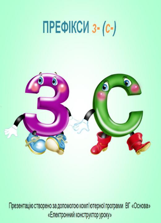 Мета: розвивати в учнів уміння вимовляти і писати слова з префіксами з-, с-; розвивати фонематичний слух, увагу, вміння свідомо використовувати префікси на письмі; формувати дії контролю й оцінювання, вміння працювати в групах; виховувати культуру поведінки, повагу й любов до оточуючих.