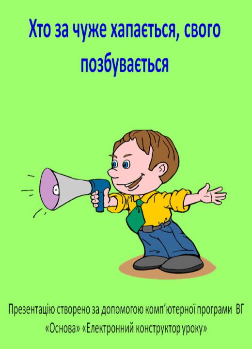 Презентація у форматі ppt плюс конспект у форматі doc (3 стр.) до уроку № 95. Хто за чуже хапається, свого позбувається. 2 клас. Презентація складена у повній відповідності з розробкою уроку, складається з 15 слайдів: базових понять, ілюстрацій, пояснень до них і дидактичних матеріалів. Для вчителів початкових класів.
