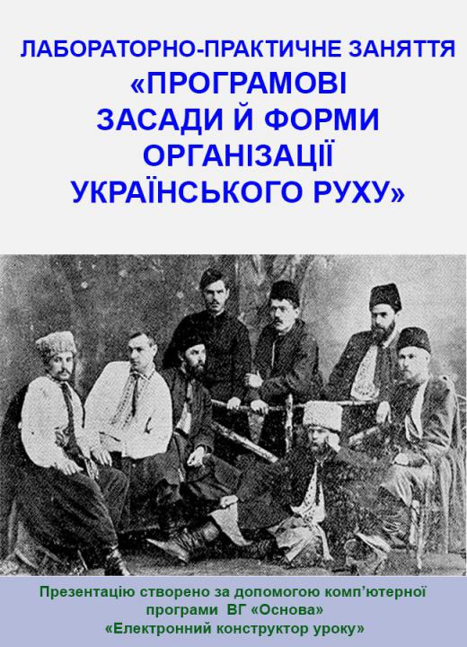 Презентація в форматі. рpt плюс конспект у форматі. doc до уроку № 30. Лабораторно-практичне заняття «Програмові засади й форми організації українського руху». 9 клас