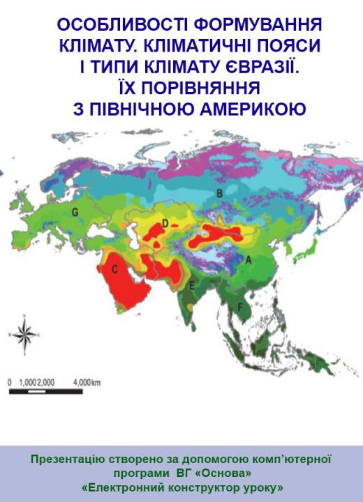Презентація в форматі. рpt плюс конспект у форматі. doc до уроку № 55. Особливості формування клімату. Кліматичні пояси і типи клімату Євразії. Їх порівняння з Північною Америкою. 7 клас