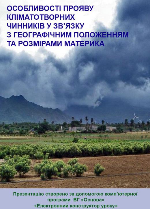 Тема. Особливості прояву кліматотворних чинників у зв’язку з географічним положенням та розмірами материка