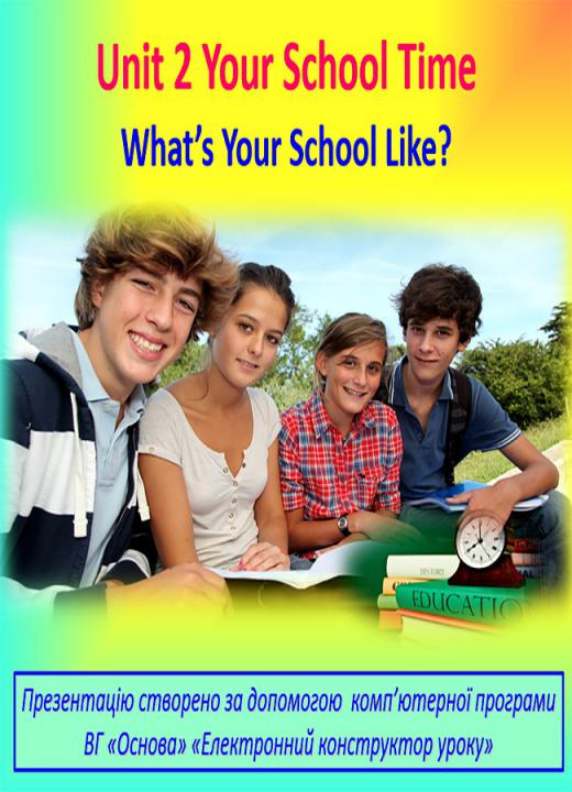 Презентація в форматі Ppt плюс конспект у форматі Doc (3 стр.) до уроку №16. Your School Time. 8 клас (за підручником О. Д. Карп’юк).