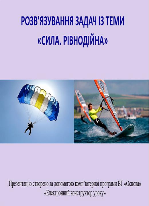 Презентація в форматі Ppt плюс конспект у форматі Doc (6 стр.) до уроку №37. Розв’язування задач із теми «Сила. Рівнодійна». 7 клас. Презентація складена у повній відповідності з розробкою уроку, складається з 24 слайдів: базових понять, ілюстрацій, пояснень до них і дидактичних матеріалів. Для вчителів фізики.