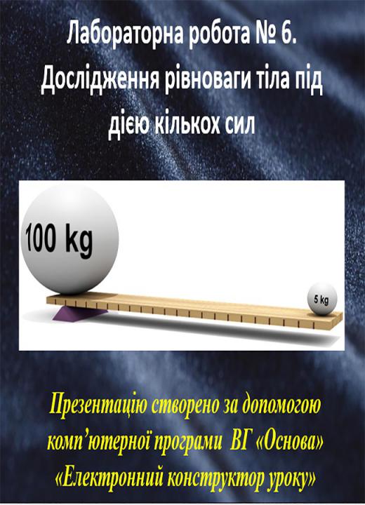Тема уроку. Лабораторна робота № 6. Дослідження рівноваги тіла під дією кількох сил