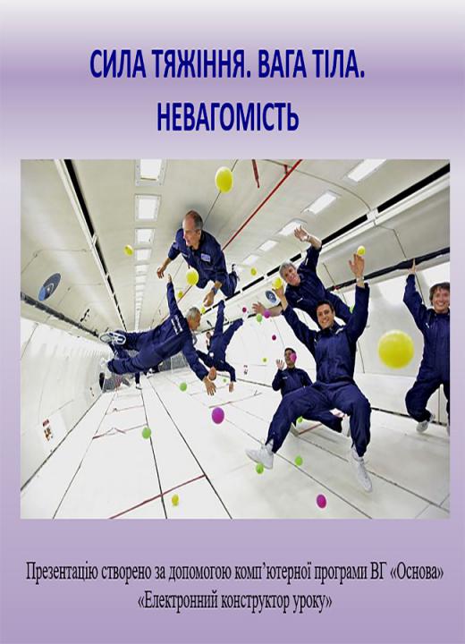 Виховна: продовжити формування уявлень учнів про навколишній світ; продовжити формування науково-матеріалістичного світогляду, розглянувши причини появи сили тяжіння, ваги тіла; розповісти про важливість досліджень явища невагомості; показати роль науки в пізнанні законів природи сили, які супроводжують фізичні явища, сприяти розвитку комунікативних умінь.