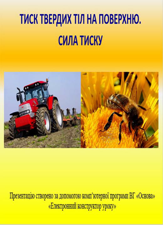 Навчальна: сформувати в учнів загальне уявлення про тиск, силу тиску; розглянути тиск як фізичну величину, досягти розуміння способів зменшення й збільшення тиску; почати формування вмінь застосовувати формулу для розрахунку тиску твердих тіл під час розв’язування розрахункових задач; використання формули тиску під час розв’язування якісних задач.