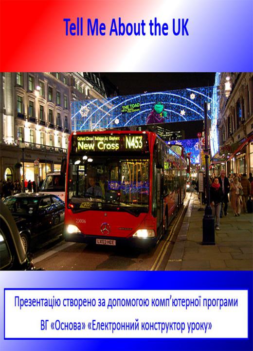 Презентація в форматі Ppt плюс конспект у форматі Doc (3 стр.) до уроку №59. Tell Me about the UK. 9 клас.