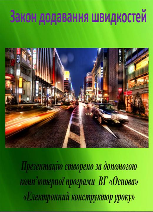 Тема уроку. Закон додавання швидкостей