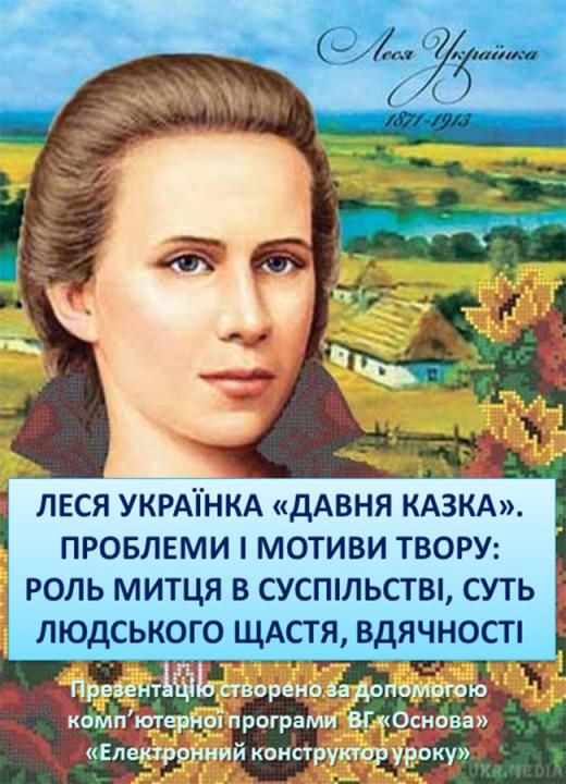 Презентація у форматі ppt (13 слайдів) плюс конспект у форматі doc (13 стор.) до уроку «Леся Українка «Давня казка». Проблеми і мотиви твору: роль митця в суспільстві, суть людського щастя, вдячності». Презентація складена у повній відповідності з розробкою уроку: базових понять, ілюстрацій, пояснень до них і дидактичних матеріалів. Для вчителів курсу «Українська література. 8 клас».