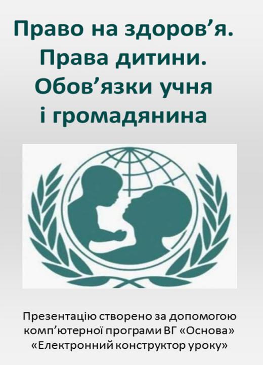 Урок 19. Право на здоров’я. Права дитини. Обов’язки учня і громадянина.