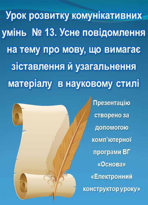 Урок розвитку комунікативних умінь № 13. Усне повідомлення на тему про мову, що вимагає зіставлення й узагальнення матеріалу в науковому стилі