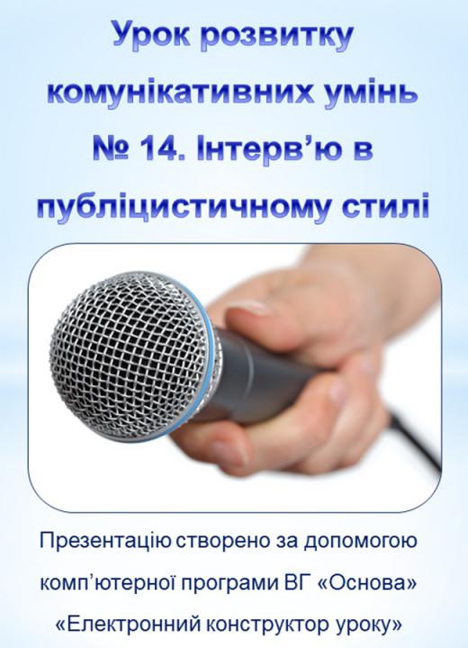 Урок розвитку комунікативних умінь № 14. Інтерв’ю в публіцистичному стилі