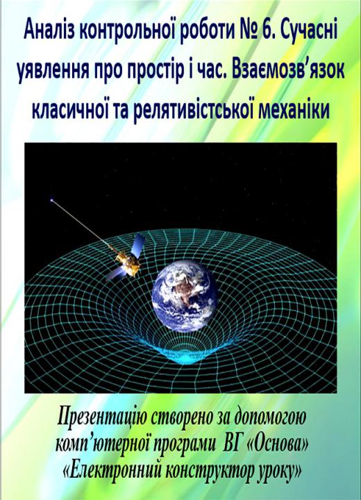 Тема уроку. Аналіз контрольної роботи № 6. Сучасні уявлення про простір і час. Взаємозв’язок класичної та релятивістської механіки