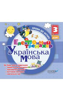 Електронний тренажер - це інтерактивний посібник для учнів третіх класів, які вивчають українську мову в школах з українською мовою навчання. Він спрямований на засвоєння учнями в цікавій, ігровій формі навчального матеріалу з розділів програми курсу. Посібник містить теоретичний матеріал, тренувальні вправи різного рівня складності з кожної теми розділів курсу. Для перевірки засвоєння учнями теми в кінці кожного розділу пропоновано гру-ходилку. Усі матеріали тренажеру супроводжуються дикторським текстом.