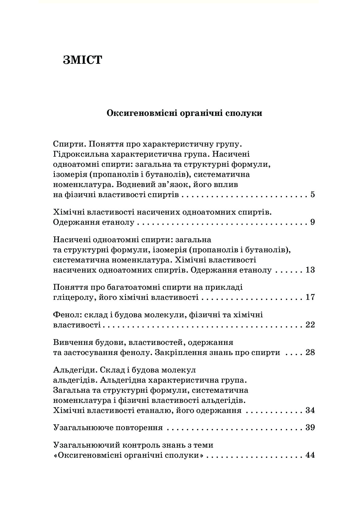Узагальнюючий контроль знань з теми «Оксигеновмісні органічні сполуки» . . . 44