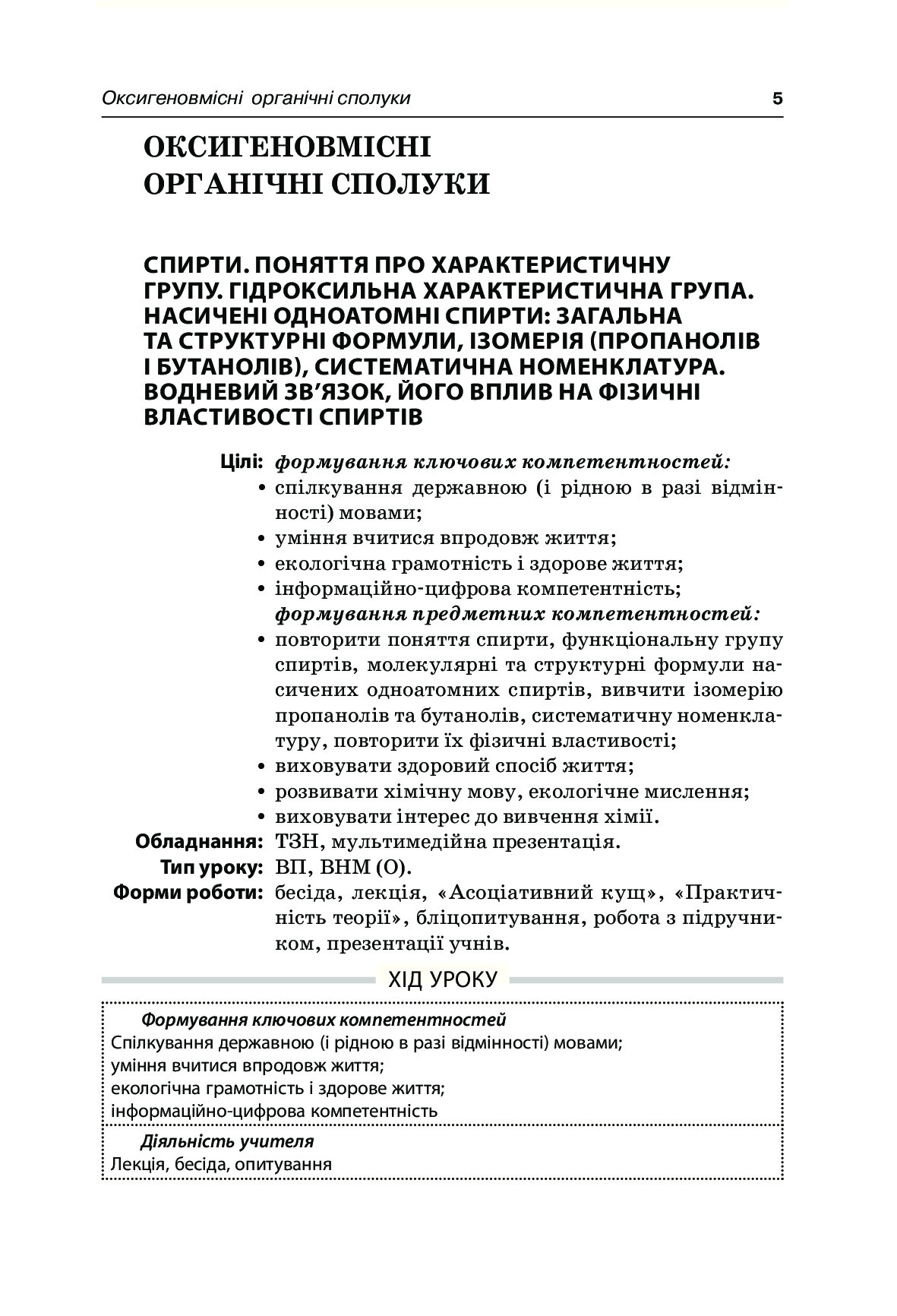 Посібник містить розробки уроків хімії для 10 класу з теми «Оксигеновмісні органічні сполуки» відповідно до нової програми. В основу покладена інтегральна технологія навчання. Посібник містить теоретичний і дидактичний матеріал до уроків, розробки перевірочних, контрольних і практичних робіт.