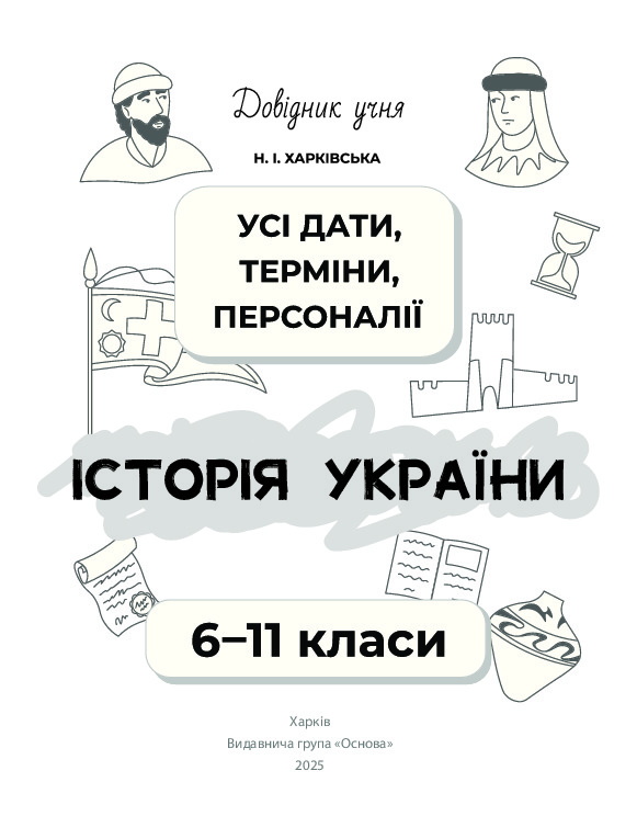 Посібник допоможе учням повторити, впорядкувати, закріпити та систематизувати навчальний матеріал з історії України. Довідник буде корисним під час уроків, підготовки до оцінювання знань.