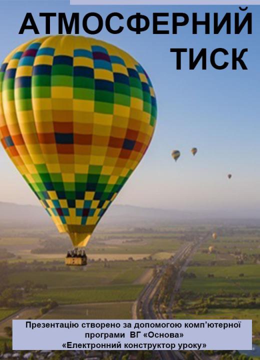 Презентація в форматі. рpt плюс конспект у форматі. doc до уроку № 33. Атмосферний тиск. 6 клас. Презентація складена у повній відповідності з розробкою уроку, складається з 6 слайдів: базових понять, ілюстрацій, пояснень до них і дидактичних матеріалів. Для вчителів географії.