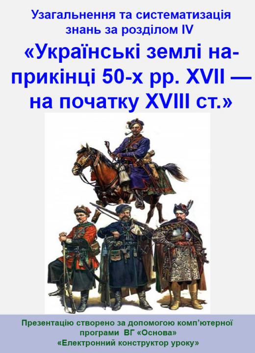 «Українські землі наприкінці 50-х рр. ХVІІ — на початку ХVІІІ ст.»