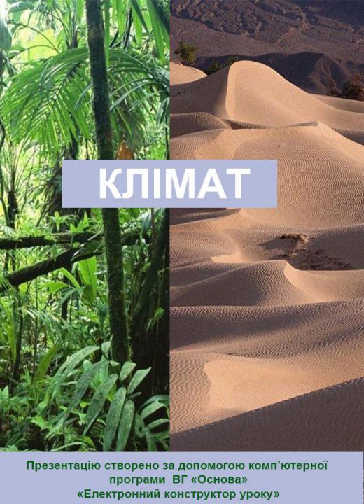Мета: формування первинних знань про клімат і кліматотвірні фактори; розвиток практичних навичок роботи з кліматичною картою; виховання розуміння важливості для людей знань про клімат.