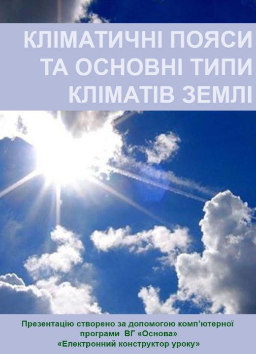 Урок 41. Кліматичні пояси та основні типи кліматівЗемлі