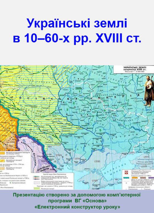 Презентація у форматі .ppt плюс конспект у форматі .doc до уроку № 42. Українські землі в 10–60-х рр. ХVІІІ ст. 8 клас