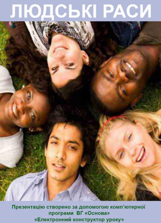 Базові поняття: раси; європеоїдна, монголоїдна, негроїдна раси; змішані раси, аборигени.