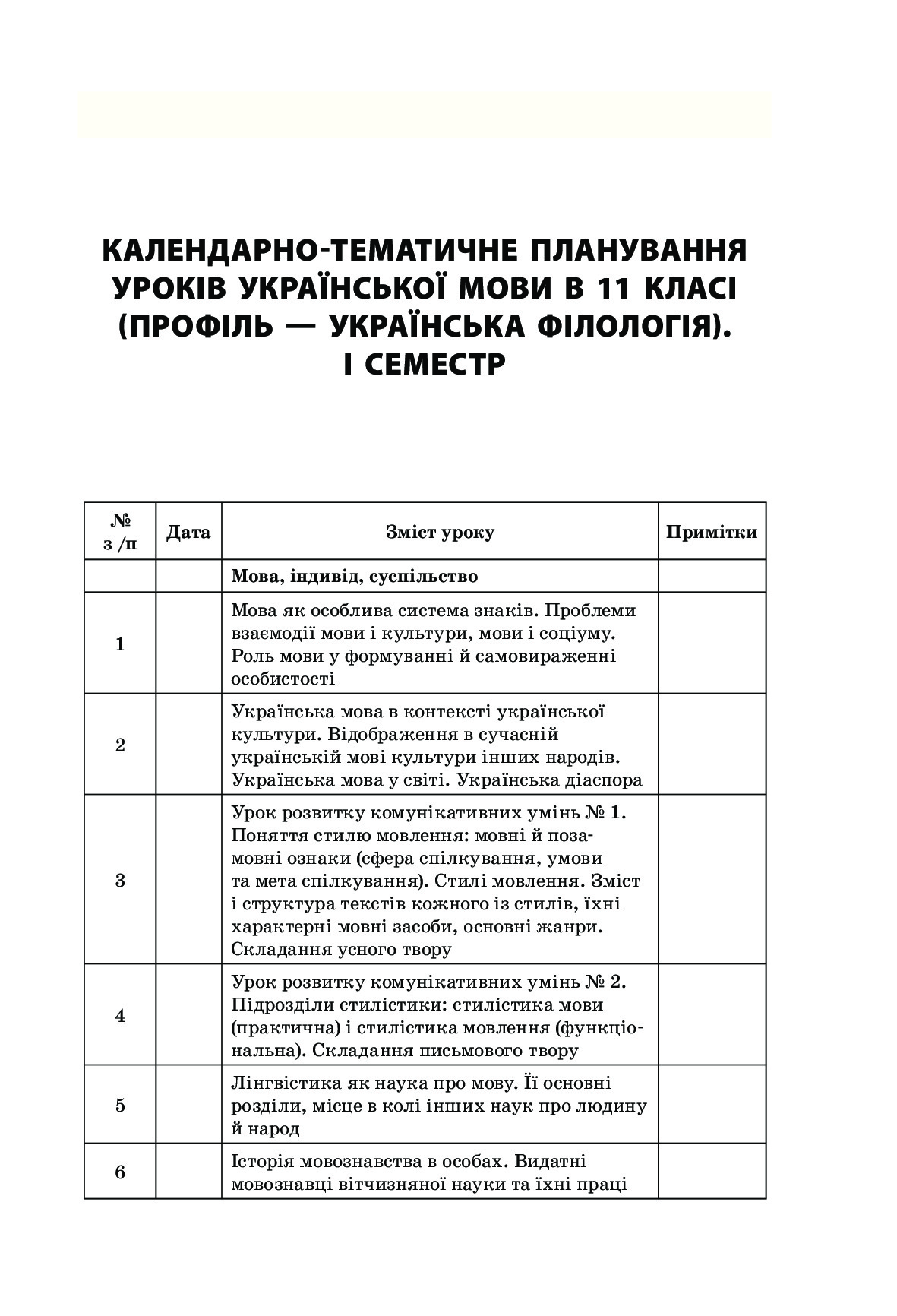 КАЛЕНДАРНО-ТЕМАТИЧНЕ ПЛАНУВАННЯ УРОКІВ УКРАЇНСЬКОЇ МОВИ В 11 КЛАСІ (ПРОФІЛЬ — УКРАЇНСЬКА ФІЛОЛОГІЯ). І СЕМЕСТР 3
