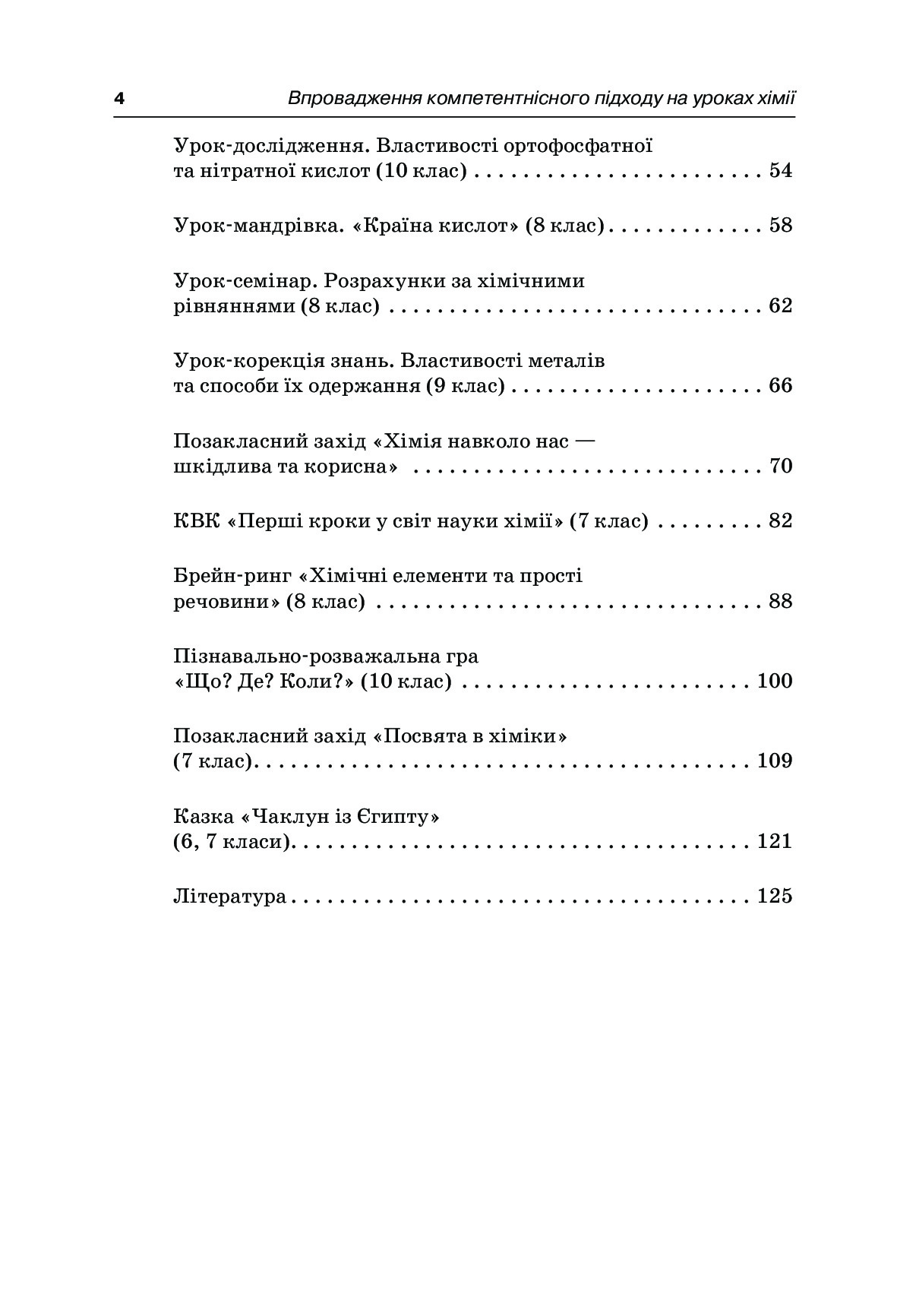 У методичній розробці пропонуються різноманітні прийоми та методи навчання для формування ключової компетентності — вміння вчитися впродовж життя — під час викладання хімії. Автор наводить приклади творчих завдань і задач проблемного характеру з хімії, уроків та сценаріїв позакласних заходів. Рекомендовано для вчителів середніх навчальних закладів.